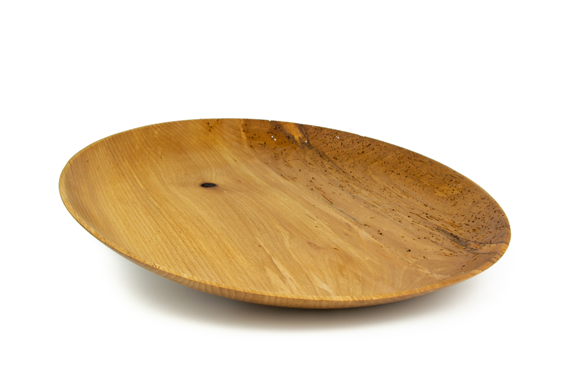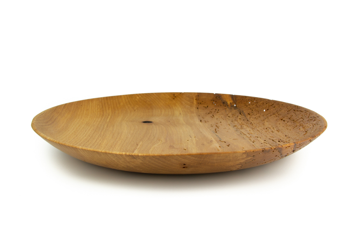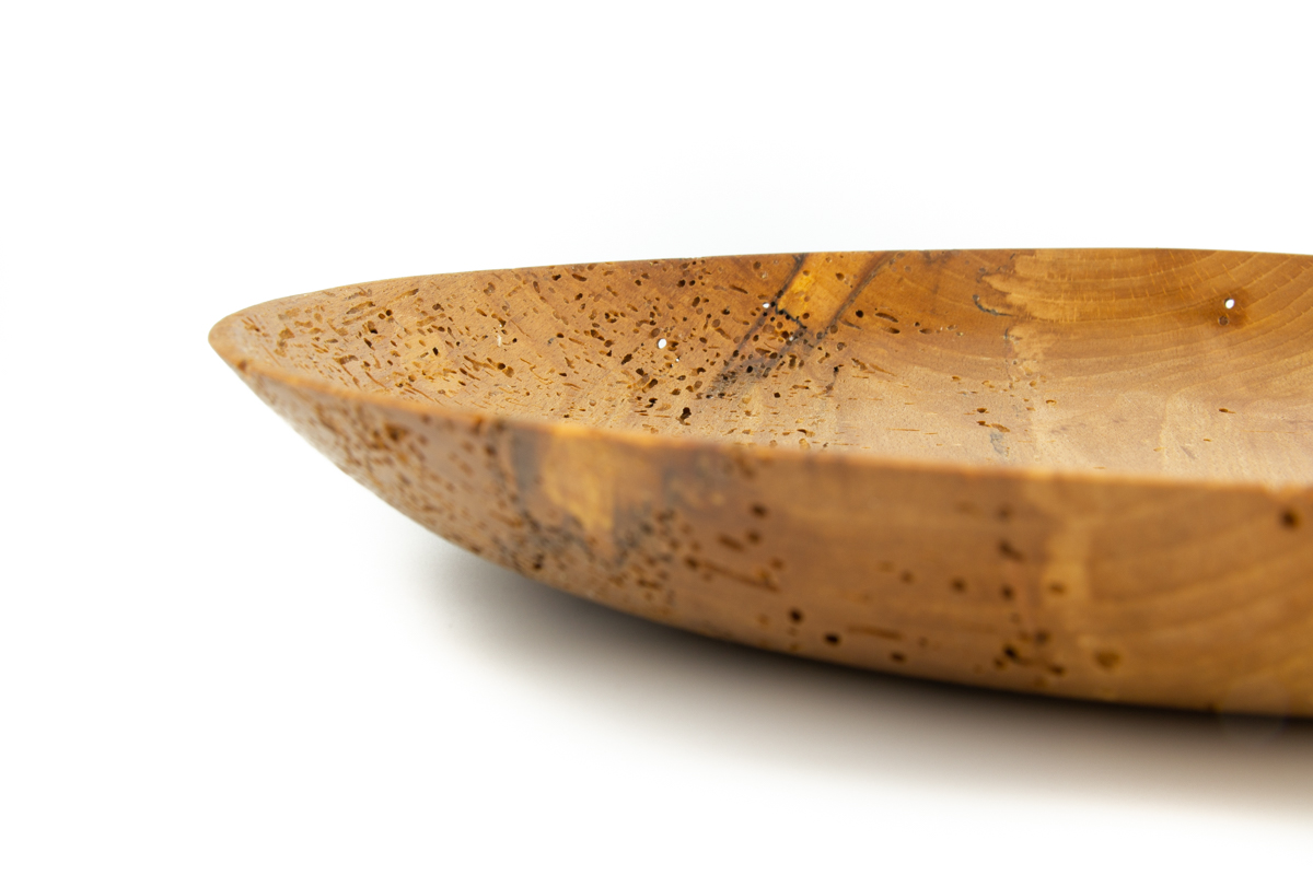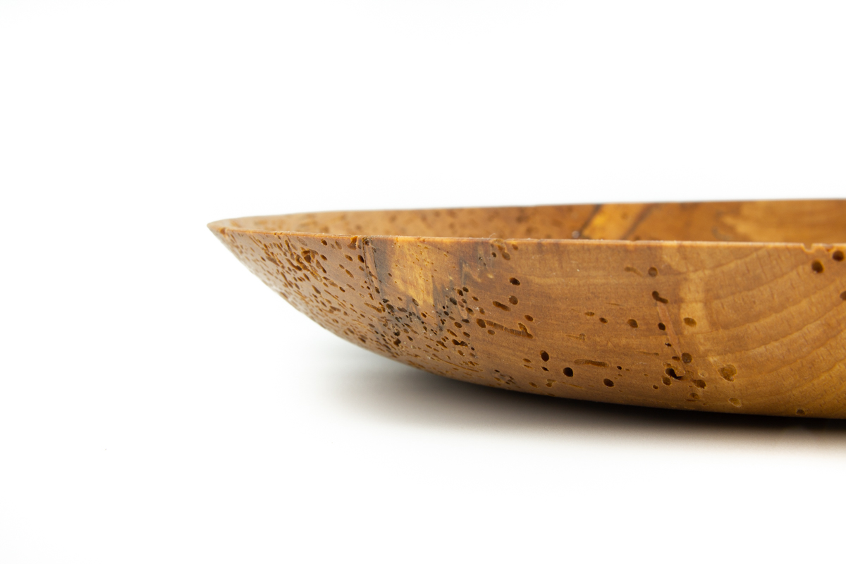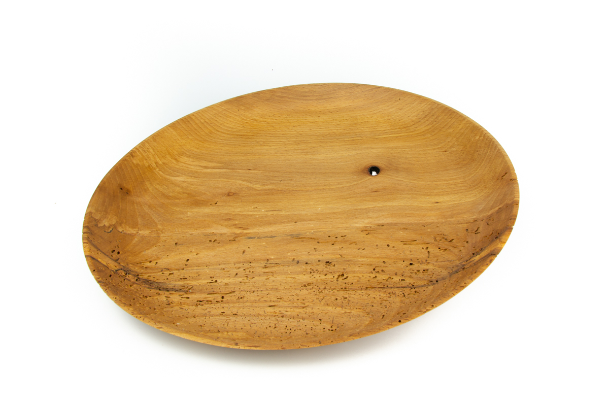 Informationen zum Unikat "Flache Schale aus gestockter Buche mit Wurmbefall"