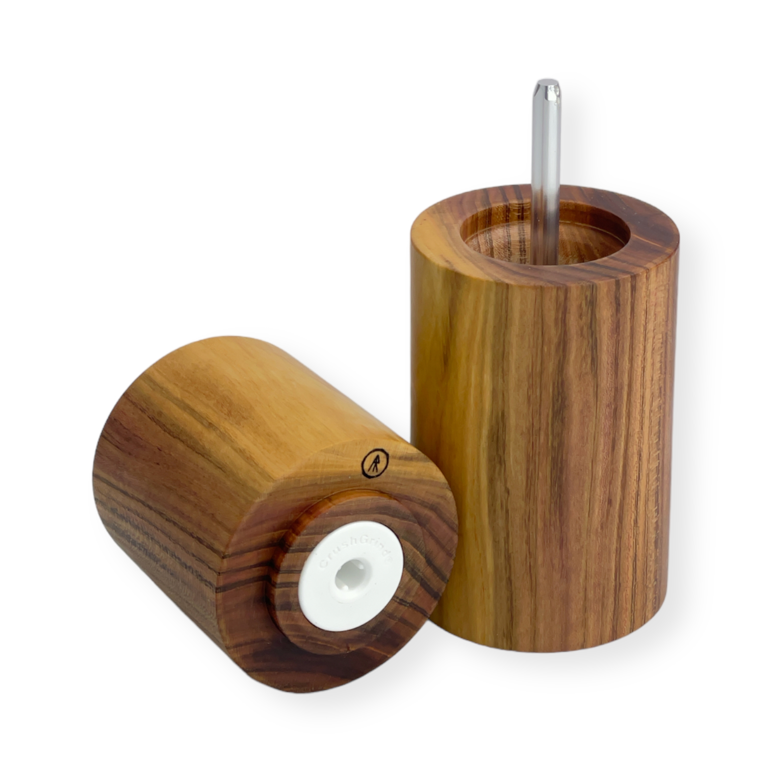 Die Gewürzmühlen überzeugen durch ihre schlichte Form und legen so Wert auf die einzigartige Maserung des Holzes. Sie besitzen ein Keramikmahlwerk der Firma CrushGrind. Bei diesem Mahlwerk kann der Mahlgrad mit einem kleinen Stellrad am Fuße eingestellt werden. Als Mahlgut kann man von Salz über Pfeffer bis hin zu getrockneten Kräutern alles verwenden. Der Kopf der Mühle lässt sich mit etwas Kraft abziehen und man kann das Mahlgut einfüllen. Wenn du noch mehr wissen willst, schreib mir einfach!