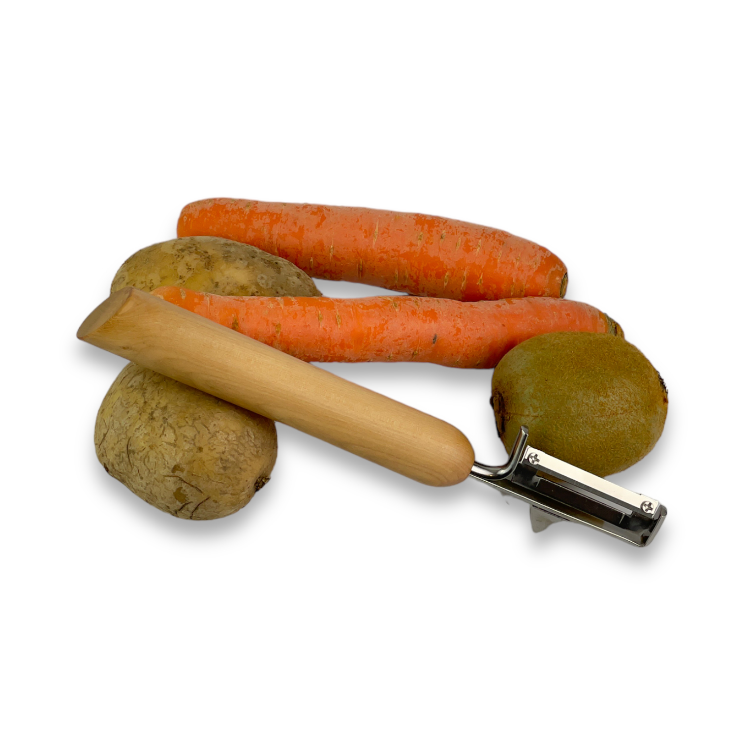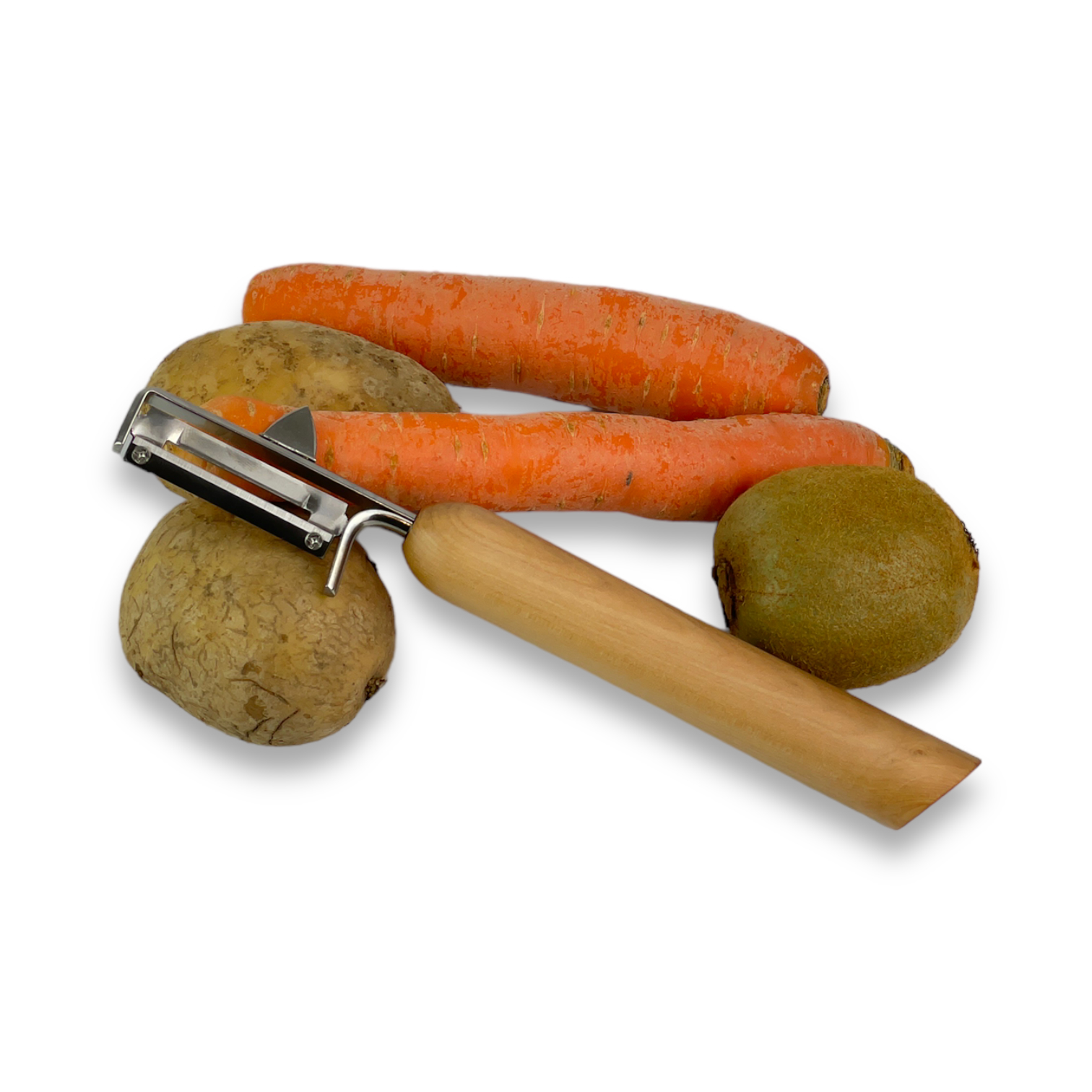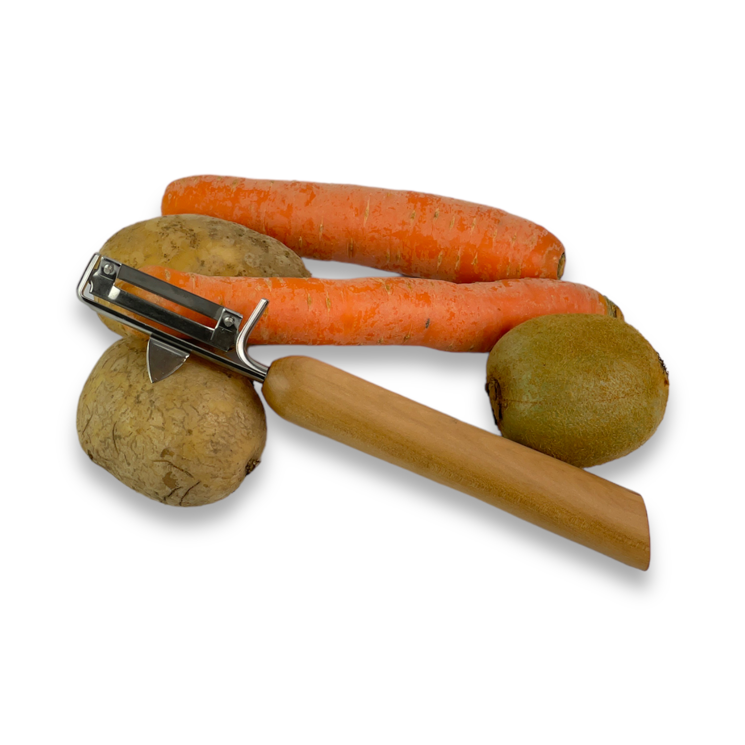 Der Pendelschäler oder im fränkischen auch "Ärbflbuzzer (Kartoffelbutzer)" genannt, ist der perfekte Küchenhelfer. Ob Karotten, Kiwi, Gurken oder Kartoffeln - mit dem Pendelschäler ist es ein Leichtes das Obst oder Gemüse in dünnen Schichten zu schälen. Das Holz ist mit natürlichen Ölen und Wachsen versiegelt und somit vollkommen lebensmittelecht. Der Schäler ist standardmäßig für Rechtshänder, kann aber auf Wunsch gerne für Linkshänder umgebaut werden, schreib mir hierzu einfach kurz eine E-Mail nach der Bestellung.