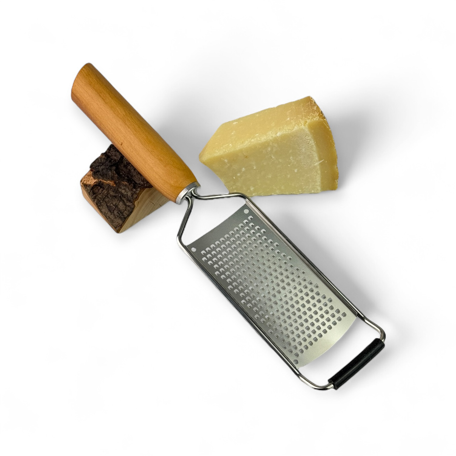 Die Käse- und Parmesanreibe mit edlem Holzgriff. Die Reibe, ist der perfekte Helfer für jeden Pastaliebhaber oder Käsejunkie. Das Holz ist mit natürlichen Ölen und Wachsen versiegelt und somit vollkommen lebensmittelecht. Die Reibe ist >Made in Germany< und besteht aus hochwertigen Edelstahl aus Solingen. Auf der Reibe befindet sich noch eine Schutzfolie, deshalb kann es auf den Bildern etwas schimmern. Die Reibe ist nicht für den Geschirrspüler geeignet.