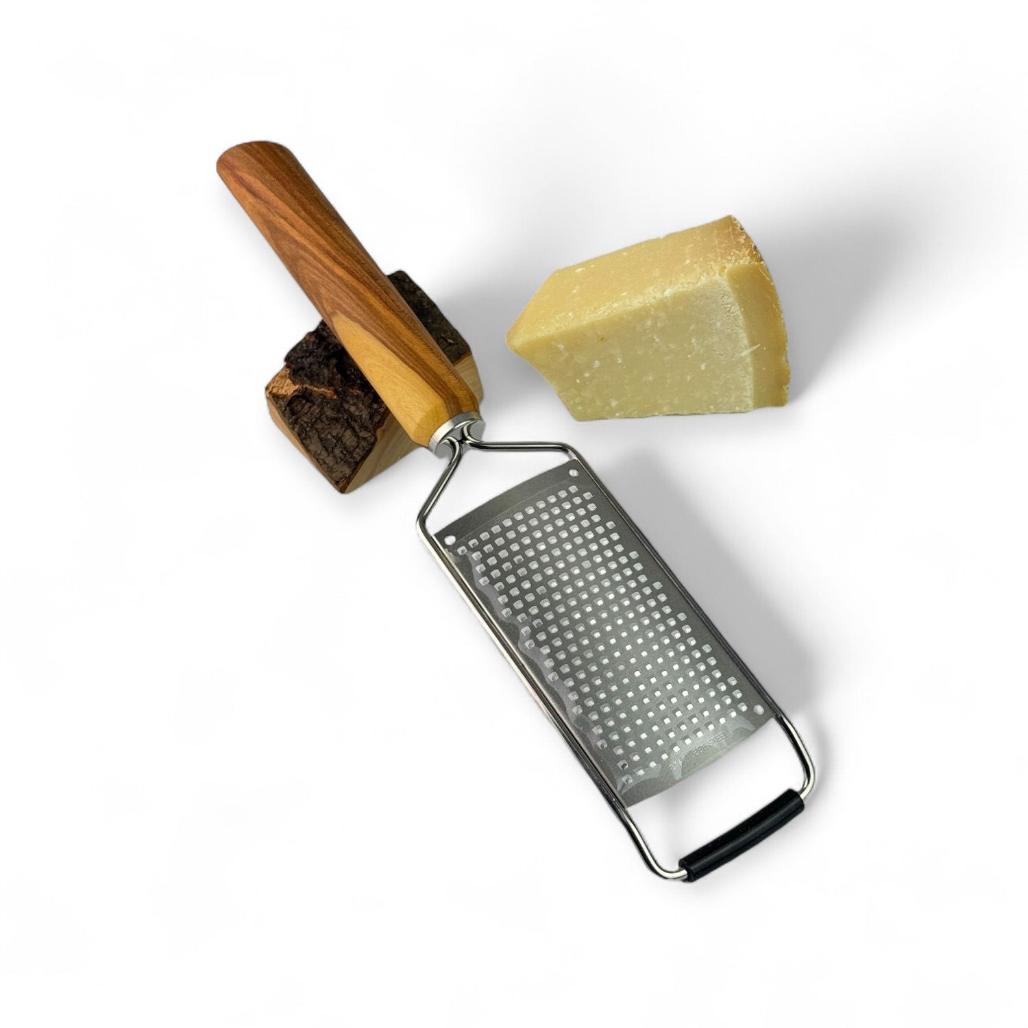 Die Käse- und Parmesanreibe mit edlem Holzgriff. Die Reibe, ist der perfekte Helfer für jeden Pastaliebhaber oder Käsejunkie. Das Holz ist mit natürlichen Ölen und Wachsen versiegelt und somit vollkommen lebensmittelecht. Die Reibe ist >Made in Germany< und besteht aus hochwertigen Edelstahl aus Solingen. Auf der Reibe befindet sich noch eine Schutzfolie, deshalb kann es auf den Bildern etwas schimmern. Die Reibe ist nicht für den Geschirrspüler geeignet.