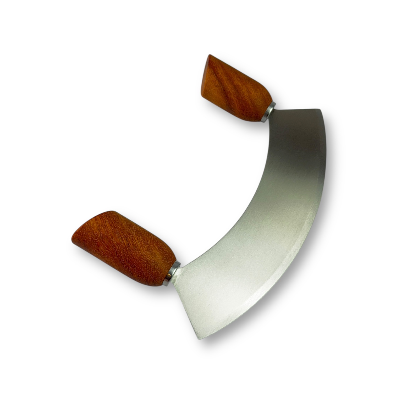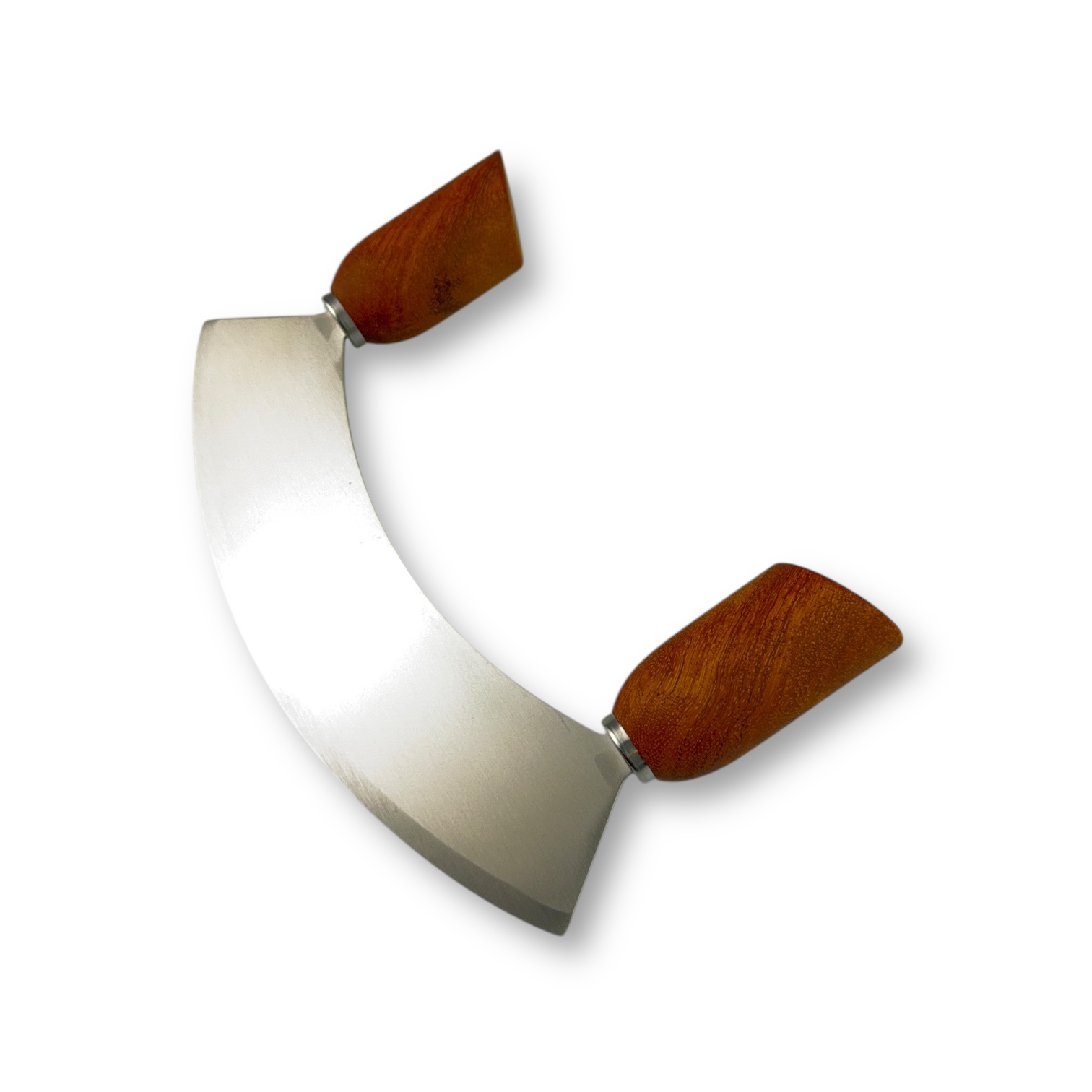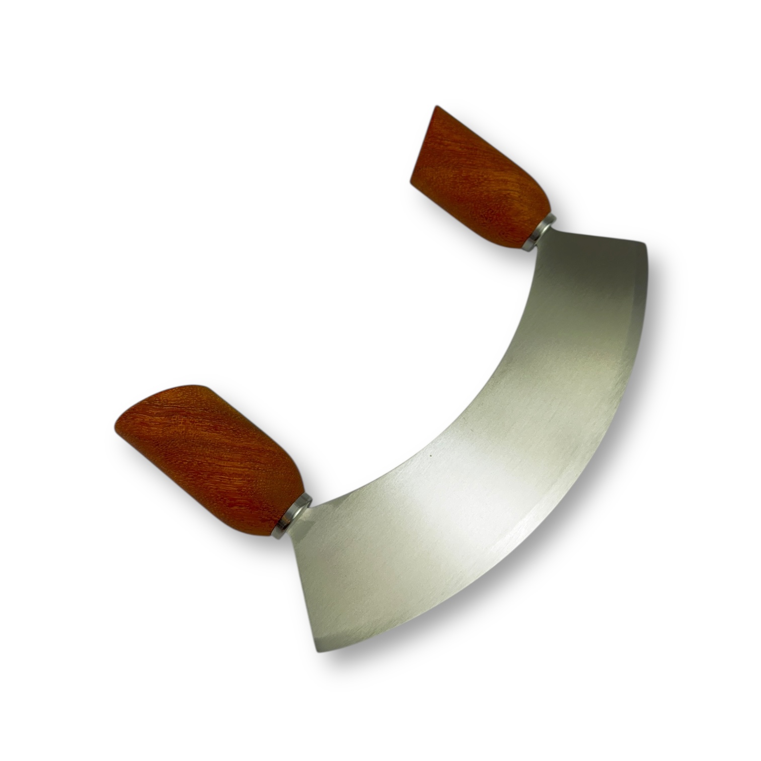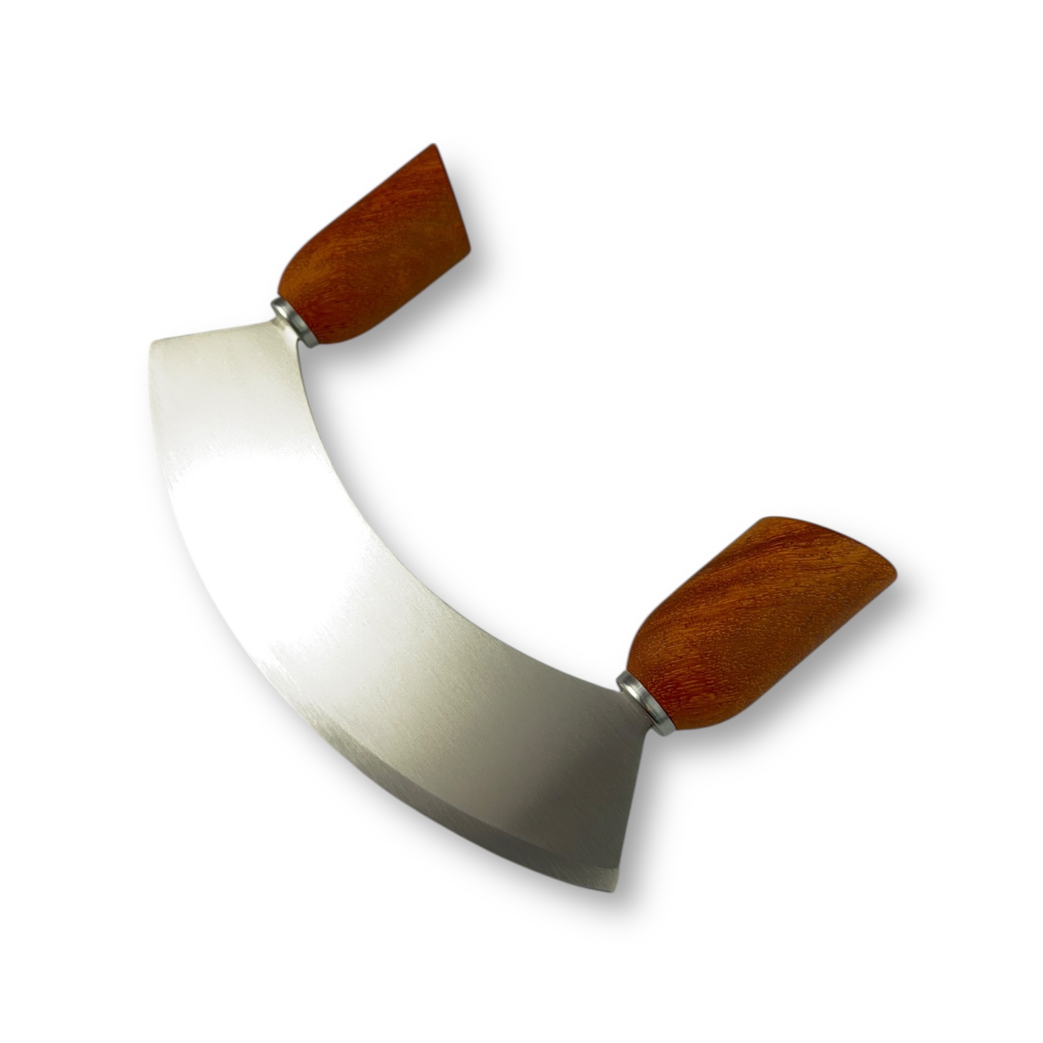 Das Wiegemesser, ist die ideale Ergänzung für jeden Hobby-Koch oder Kräuterkönig. Ob Pizza, Kräuter, oder einfach nur Flammkuchen, mit dem Wiegemesser ist es ein Leichtes zu schneiden. Das Holz ist mit natürlichen Ölen und Wachsen versiegelt und somit vollkommen lebensmittelecht. Die Klinge des Wiegemessers ist von einer Qualitätsfirma aus dem deutschen Solingen und besteht aus Edelstahl. Das Wiegemesser ist 21cm breit und die Klinge hat eine Länge von 23cm und ist sehr scharf!
