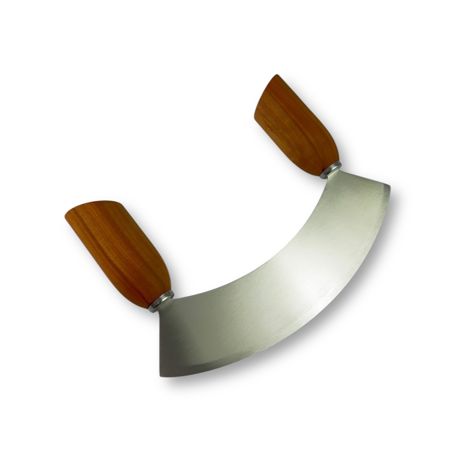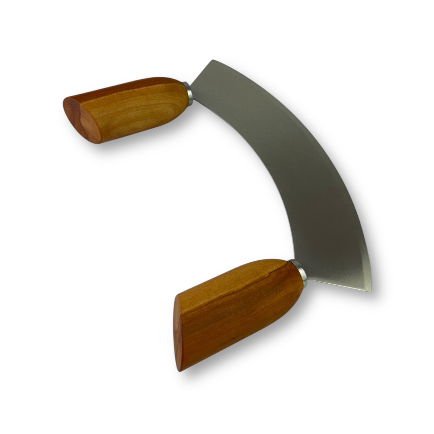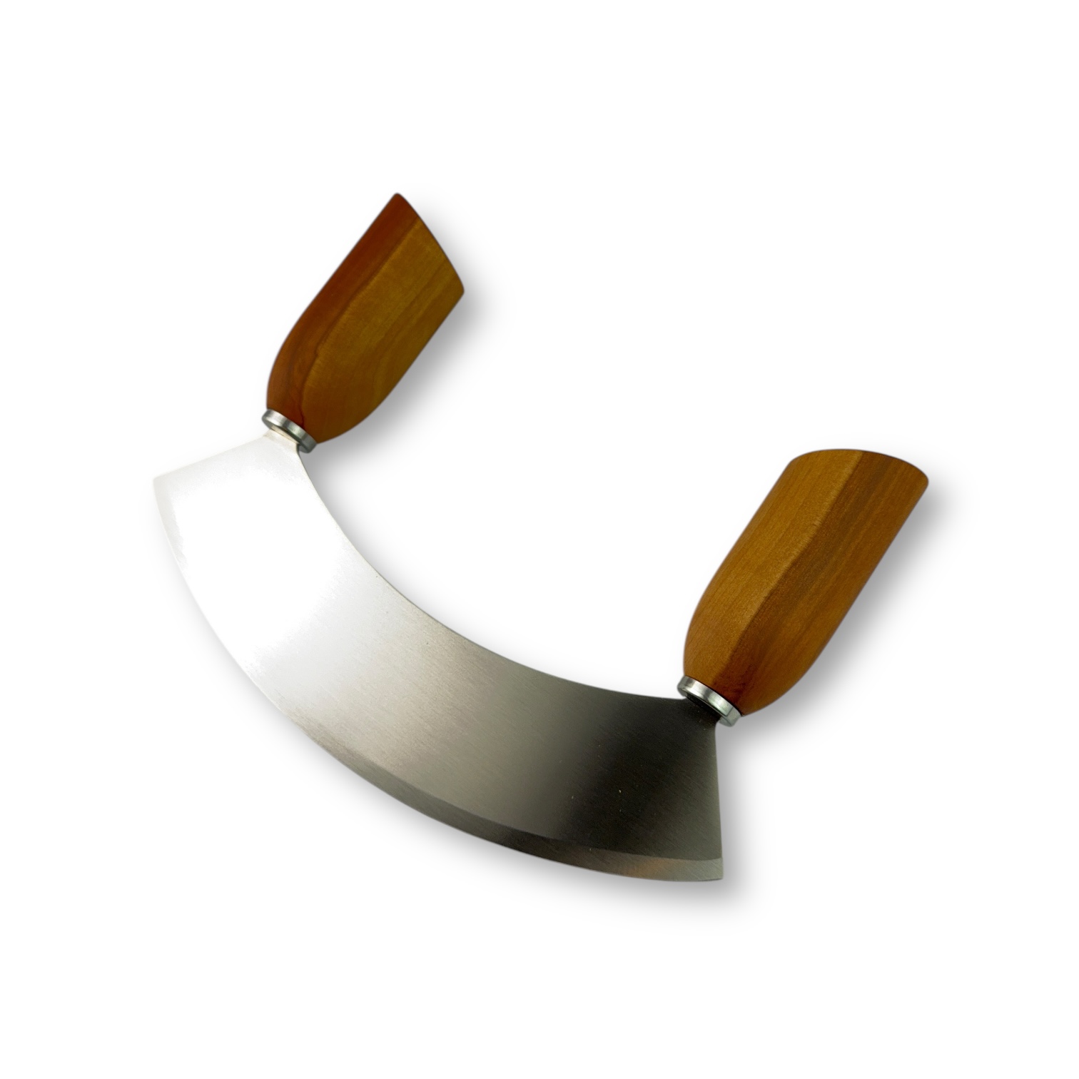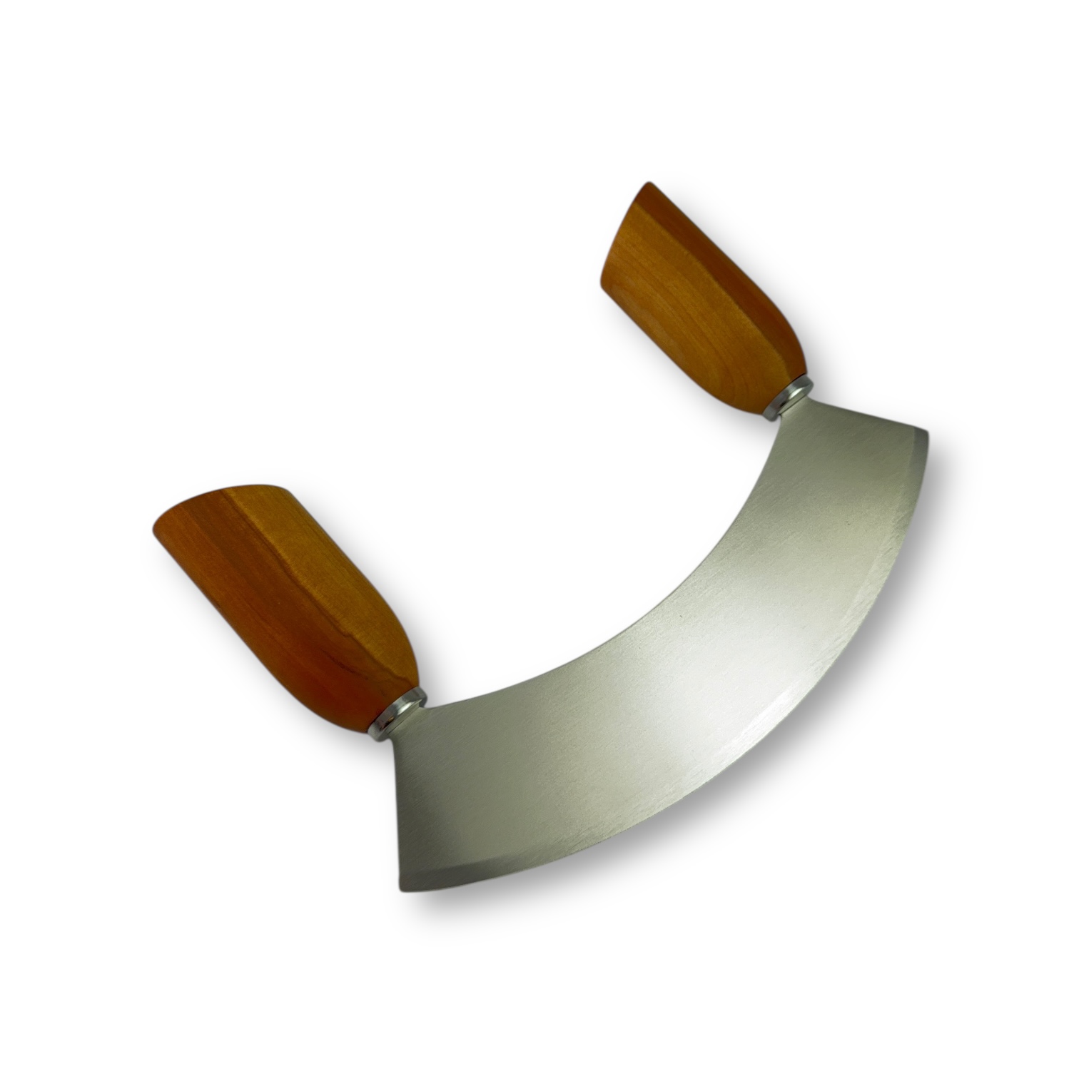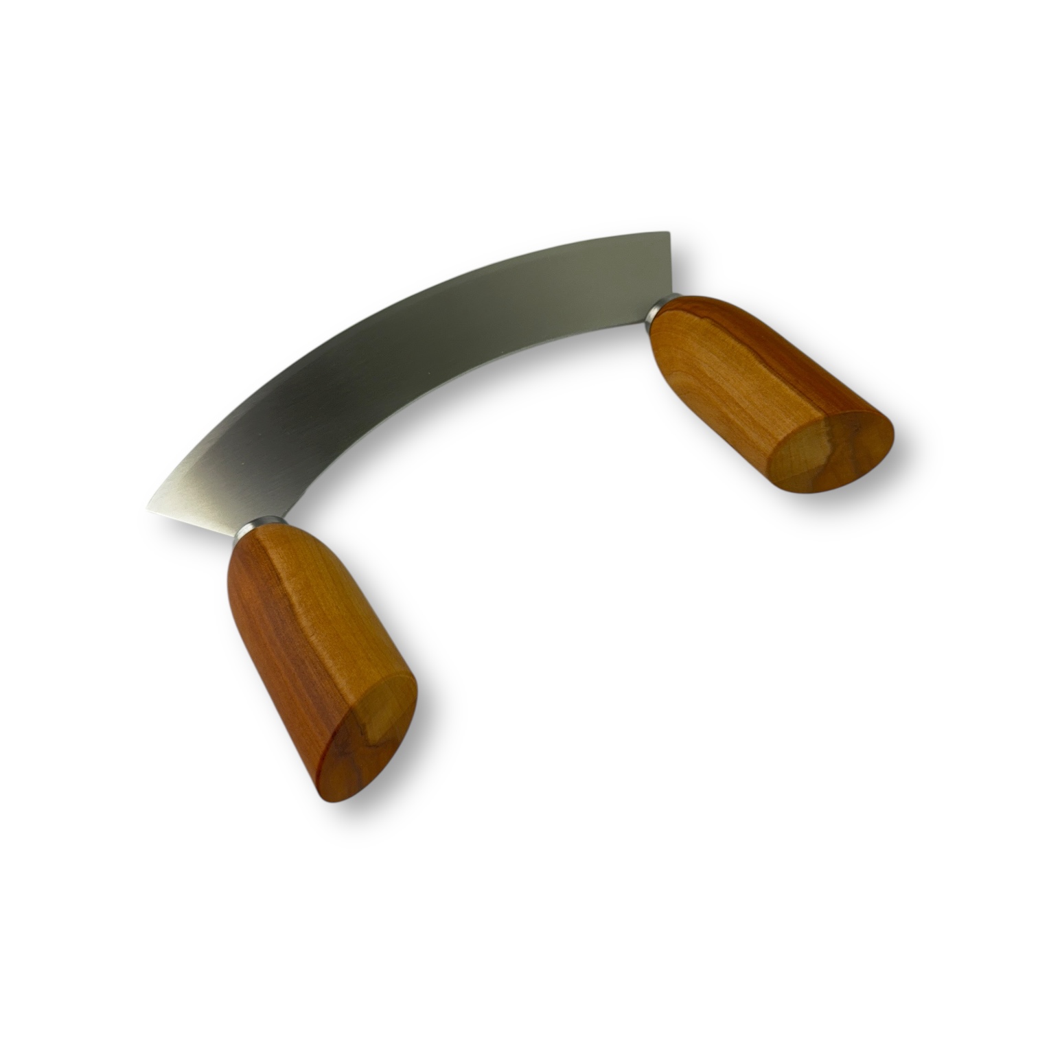 Das Wiegemesser, ist die ideale Ergänzung für jeden Hobby-Koch oder Kräuterkönig. Ob Pizza, Kräuter, oder einfach nur Flammkuchen, mit dem Wiegemesser ist es ein Leichtes zu schneiden. Das Holz ist mit natürlichen Ölen und Wachsen versiegelt und somit vollkommen lebensmittelecht. Die Klinge des Wiegemessers ist von einer Qualitätsfirma aus dem deutschen Solingen und besteht aus Edelstahl. Das Wiegemesser ist 21cm breit und die Klinge hat eine Länge von 23cm und ist sehr scharf!