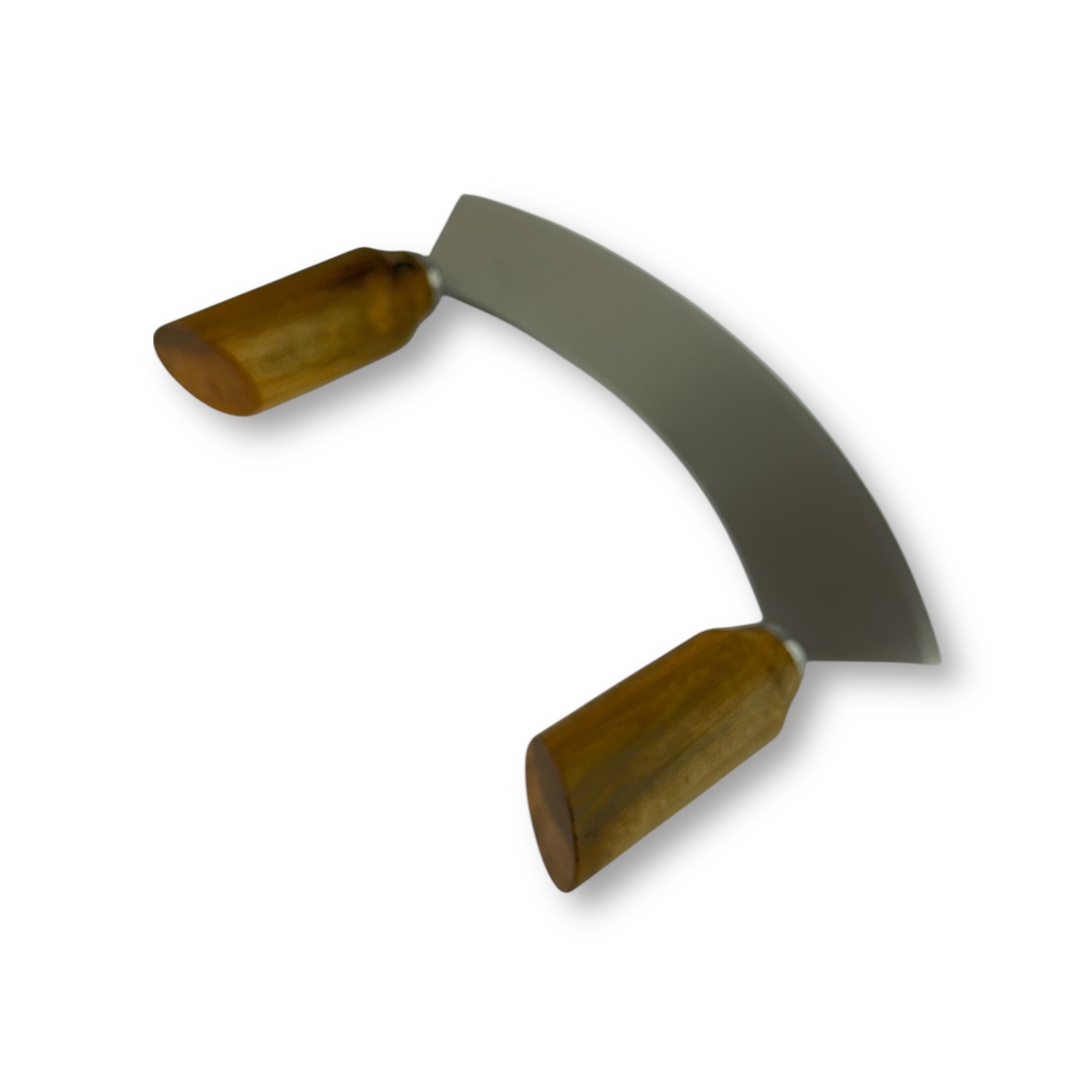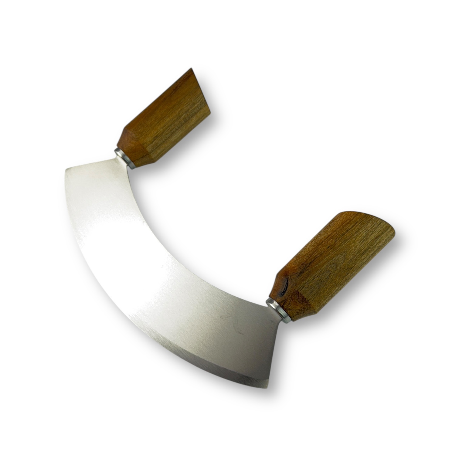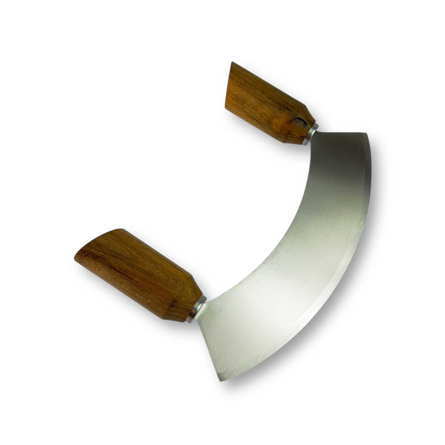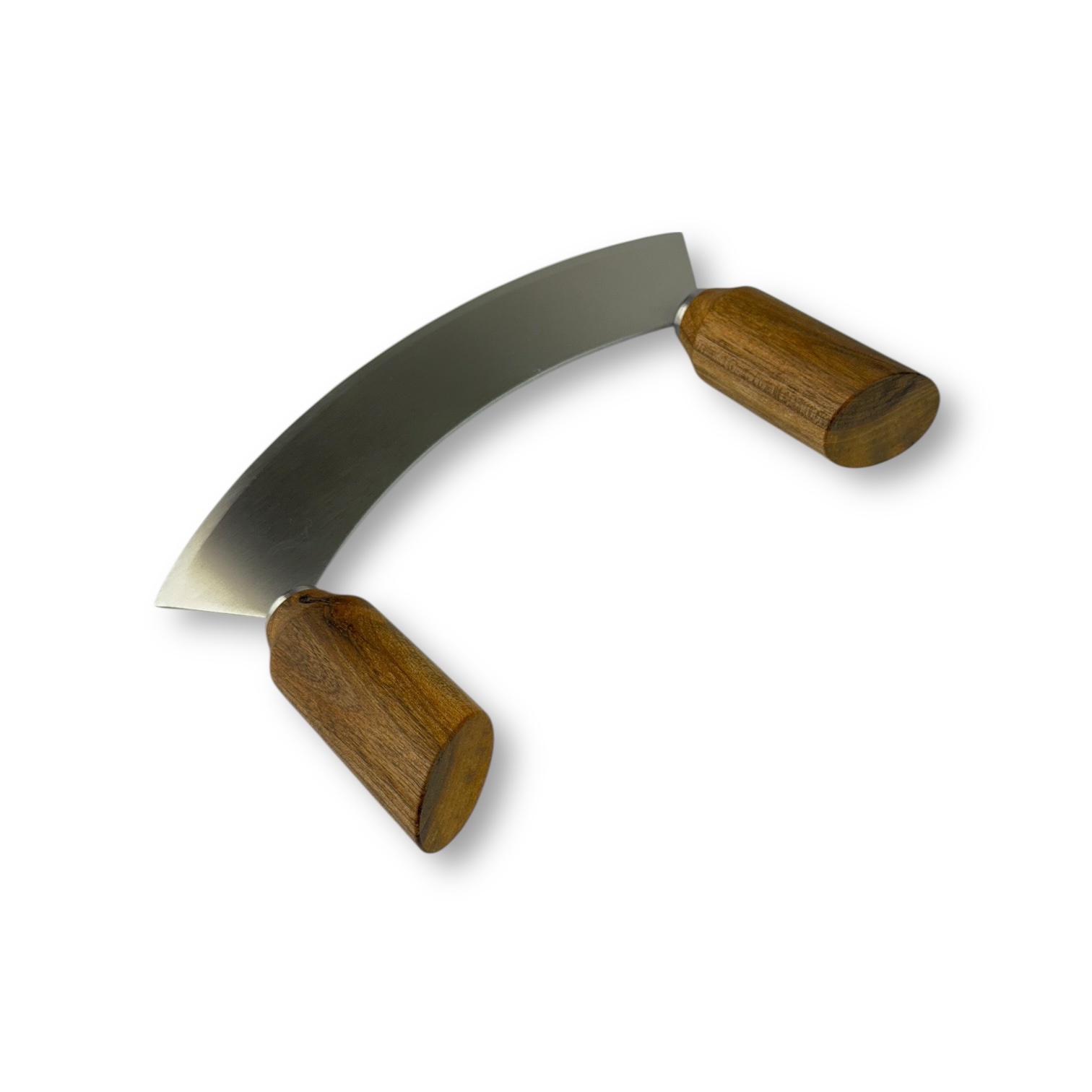 Das Wiegemesser, ist die ideale Ergänzung für jeden Hobby-Koch oder Kräuterkönig. Ob Pizza, Kräuter, oder einfach nur Flammkuchen, mit dem Wiegemesser ist es ein Leichtes zu schneiden. Das Holz ist mit natürlichen Ölen und Wachsen versiegelt und somit vollkommen lebensmittelecht. Die Klinge des Wiegemessers ist von einer Qualitätsfirma aus dem deutschen Solingen und besteht aus Edelstahl. Das Wiegemesser ist 21cm breit und die Klinge hat eine Länge von 23cm und ist sehr scharf!