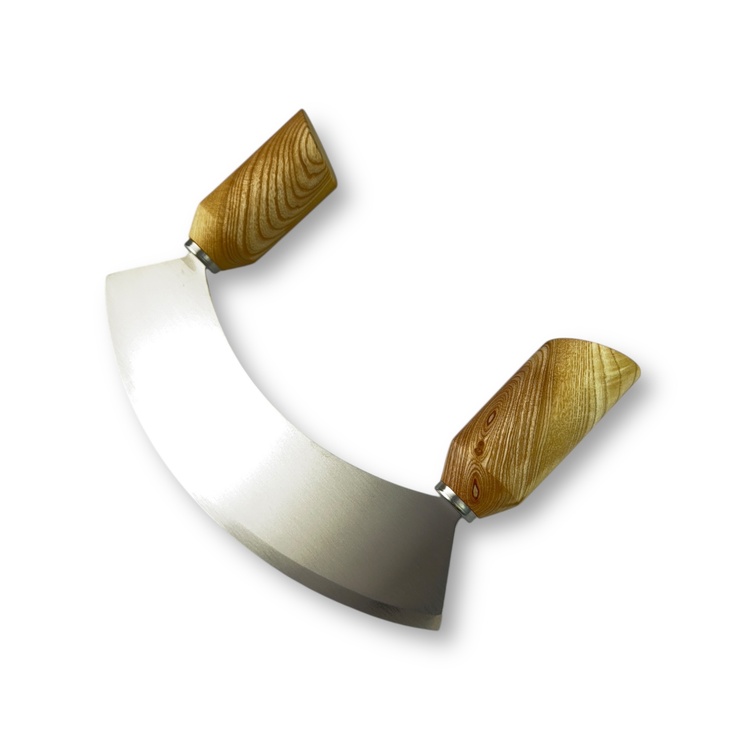 Das Wiegemesser, ist die ideale Ergänzung für jeden Hobby-Koch oder Kräuterkönig. Ob Pizza, Kräuter, oder einfach nur Flammkuchen, mit dem Wiegemesser ist es ein Leichtes zu schneiden. Das Holz ist mit natürlichen Ölen und Wachsen versiegelt und somit vollkommen lebensmittelecht. Die Klinge des Wiegemessers ist von einer Qualitätsfirma aus dem deutschen Solingen und besteht aus Edelstahl. Das Wiegemesser ist 21cm breit und die Klinge hat eine Länge von 23cm und ist sehr scharf!