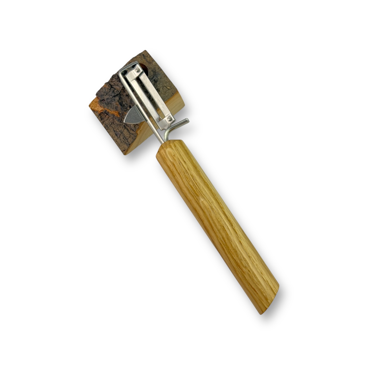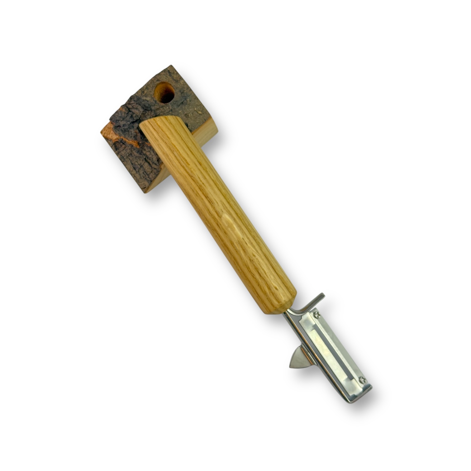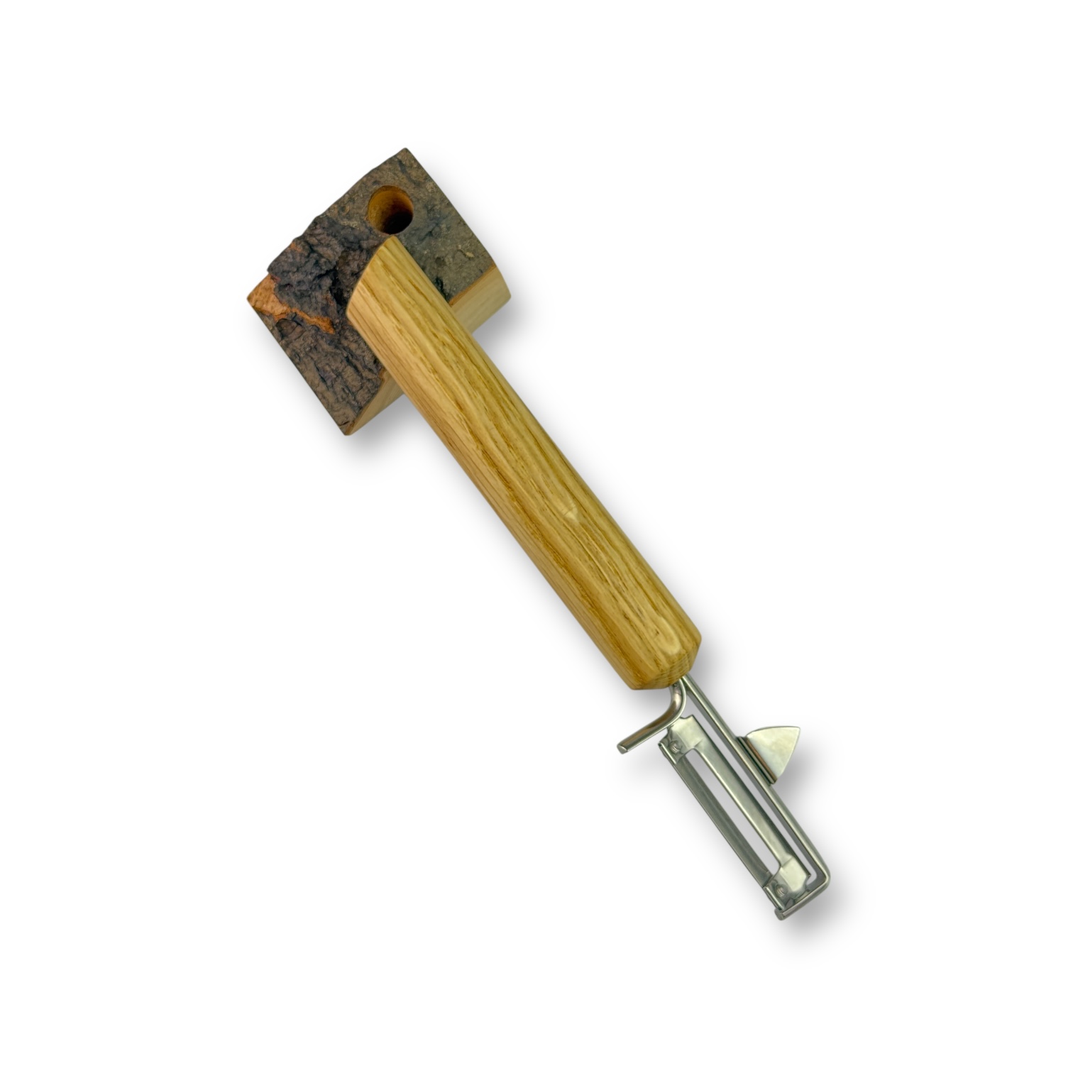 Der Pendelschäler oder im fränkischen auch "Ärbflbuzzer (Kartoffelbutzer)" genannt, ist der perfekte Küchenhelfer. Ob Karotten, Kiwi, Gurken oder Kartoffeln - mit dem Pendelschäler ist es ein Leichtes das Obst oder Gemüse in dünnen Schichten zu schälen. Das Holz ist mit natürlichen Ölen und Wachsen versiegelt und somit vollkommen lebensmittelecht. Die Klinge des Schälers besteht aus hochwertigem Edelstahl und kann nachgeschliffen oder ersetzt werden. Dieses Bauteil beziehe ich von einer deutschen Firma aus Solingen. Der Schäler ist standardmäßig für Rechtshänder! Ich habe in der Regel auch Pendelschäler für Linkshänder im Shop, kann aber jederzeit einen Pendelschäler für Linkshänder drechseln, kontaktieren Sie mich hierfür.