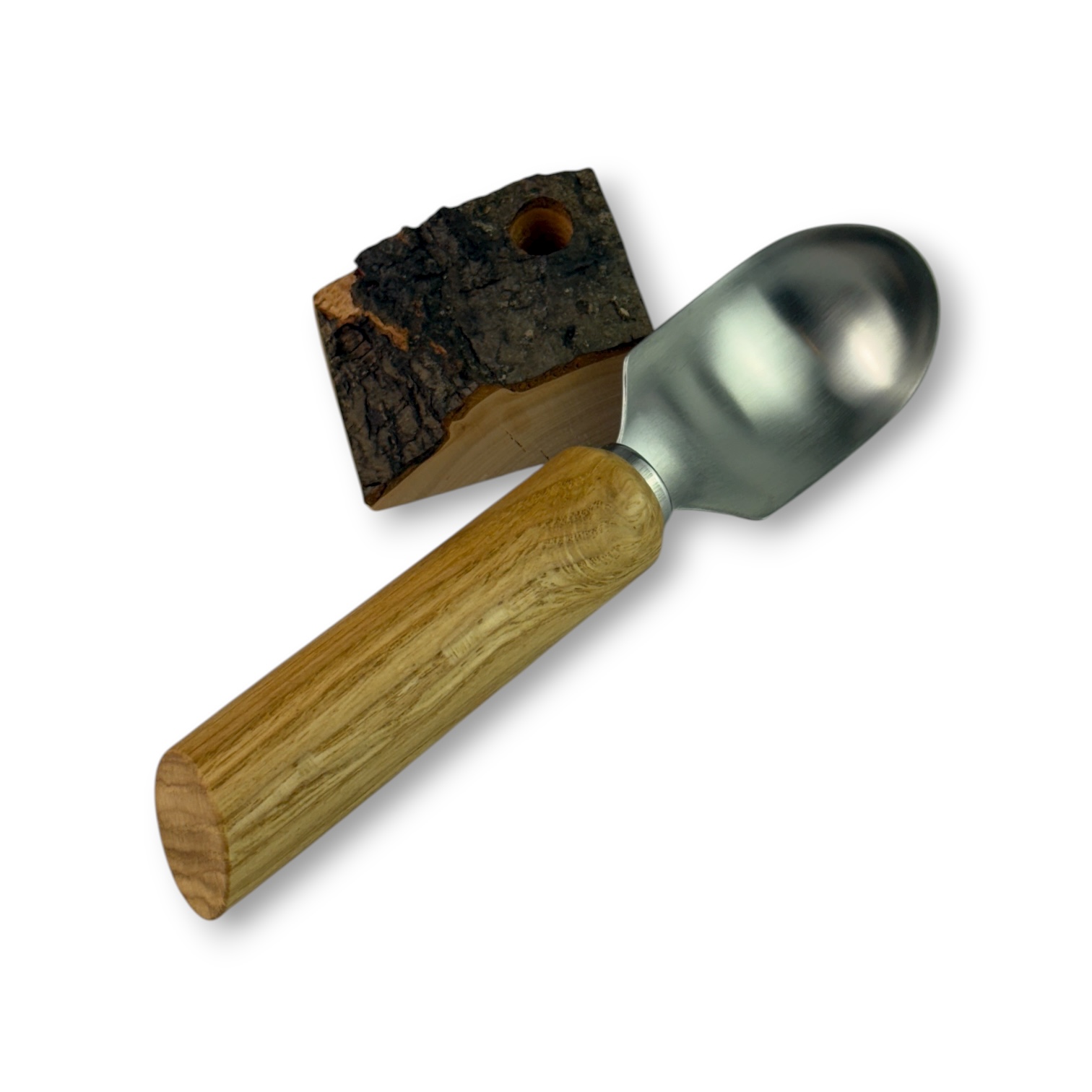 Der fein geschärfte Löffelkopf gleitet mühelos durch Melonen, Kürbis, Zucchini oder sogar Eis, während der von Hand gedrechselte Holzgriff angenehm in der Hand liegt und jedes Stück zum einzigartigen Unikat macht.