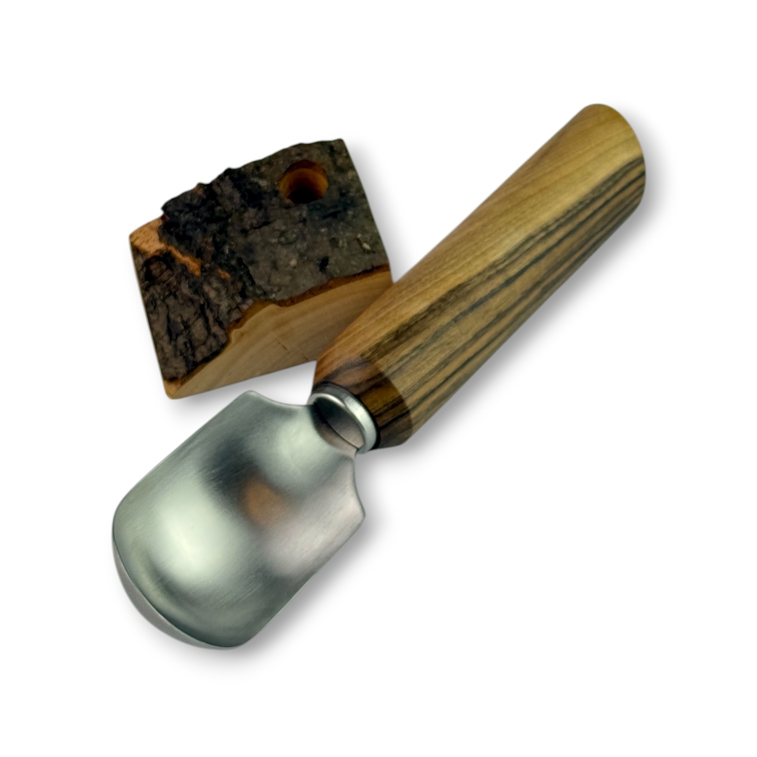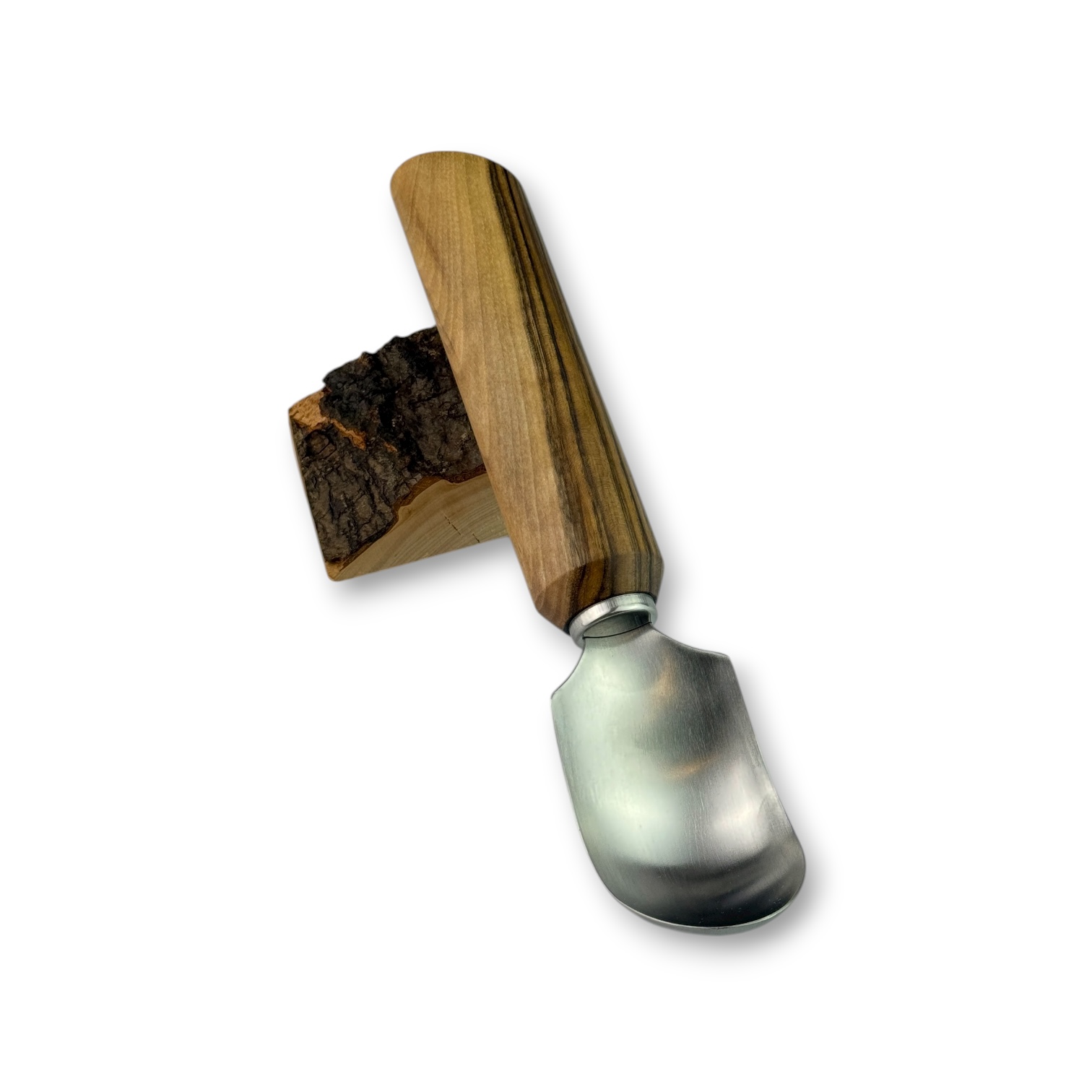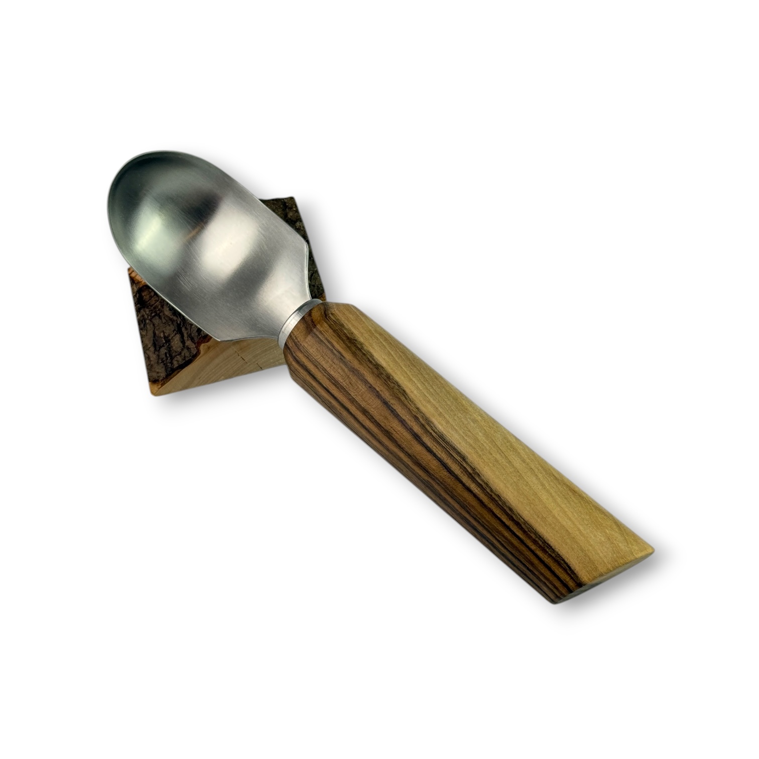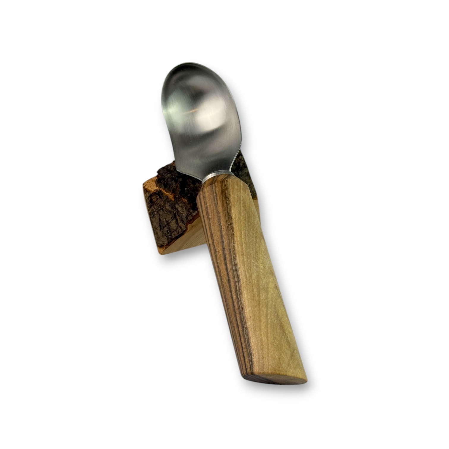 Der fein geschärfte Löffelkopf gleitet mühelos durch Melonen, Kürbis, Zucchini oder sogar Eis, während der von Hand gedrechselte Holzgriff angenehm in der Hand liegt und jedes Stück zum einzigartigen Unikat macht.
