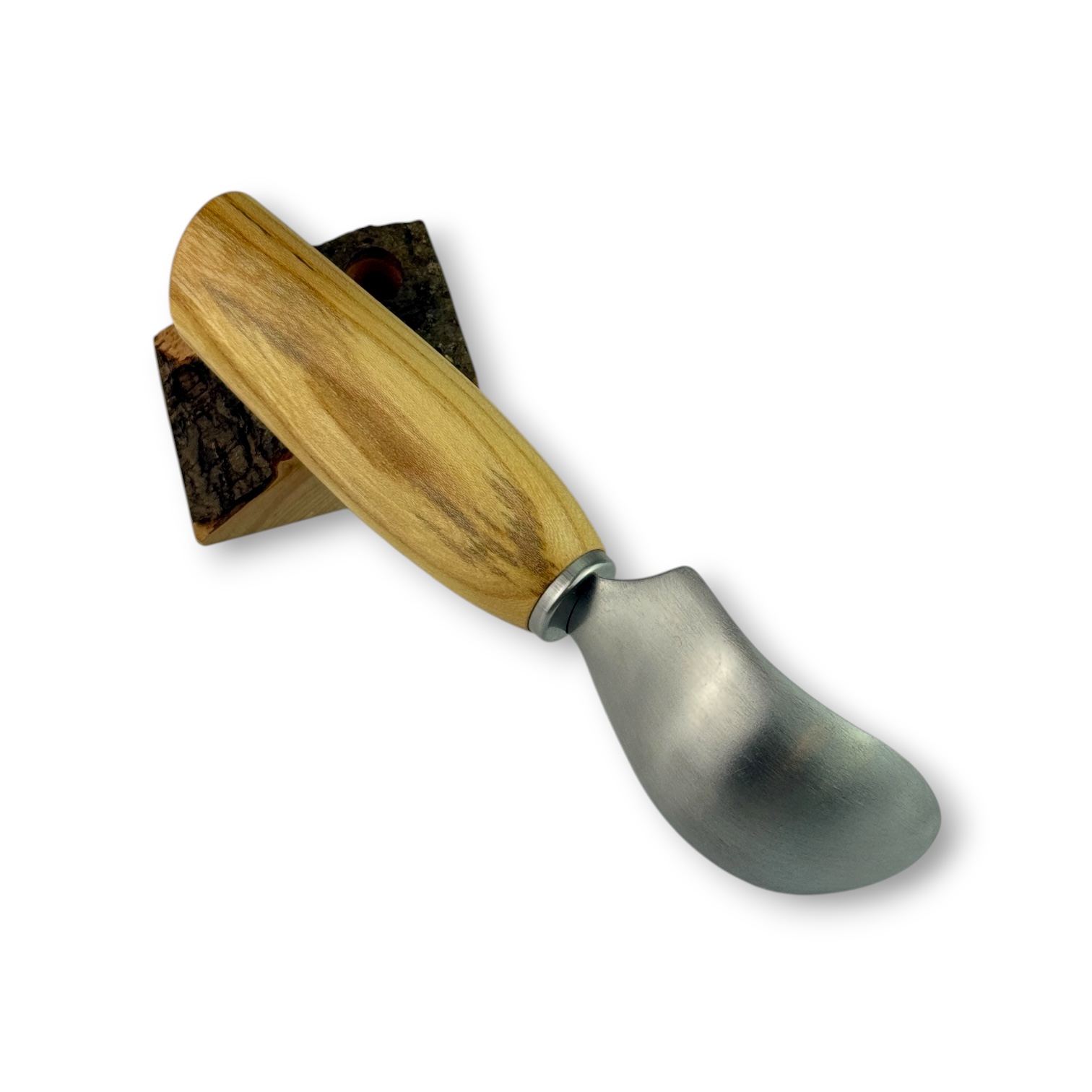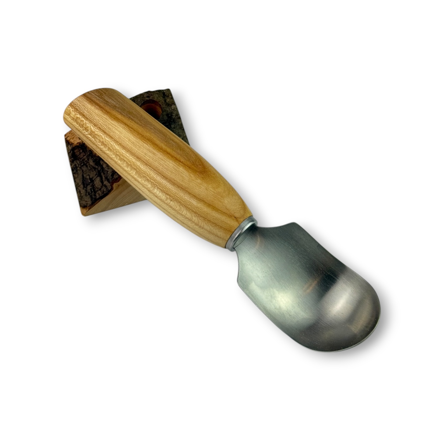 Der fein geschärfte Löffelkopf gleitet mühelos durch Melonen, Kürbis, Zucchini oder sogar Eis, während der von Hand gedrechselte Holzgriff angenehm in der Hand liegt und jedes Stück zum einzigartigen Unikat macht.
