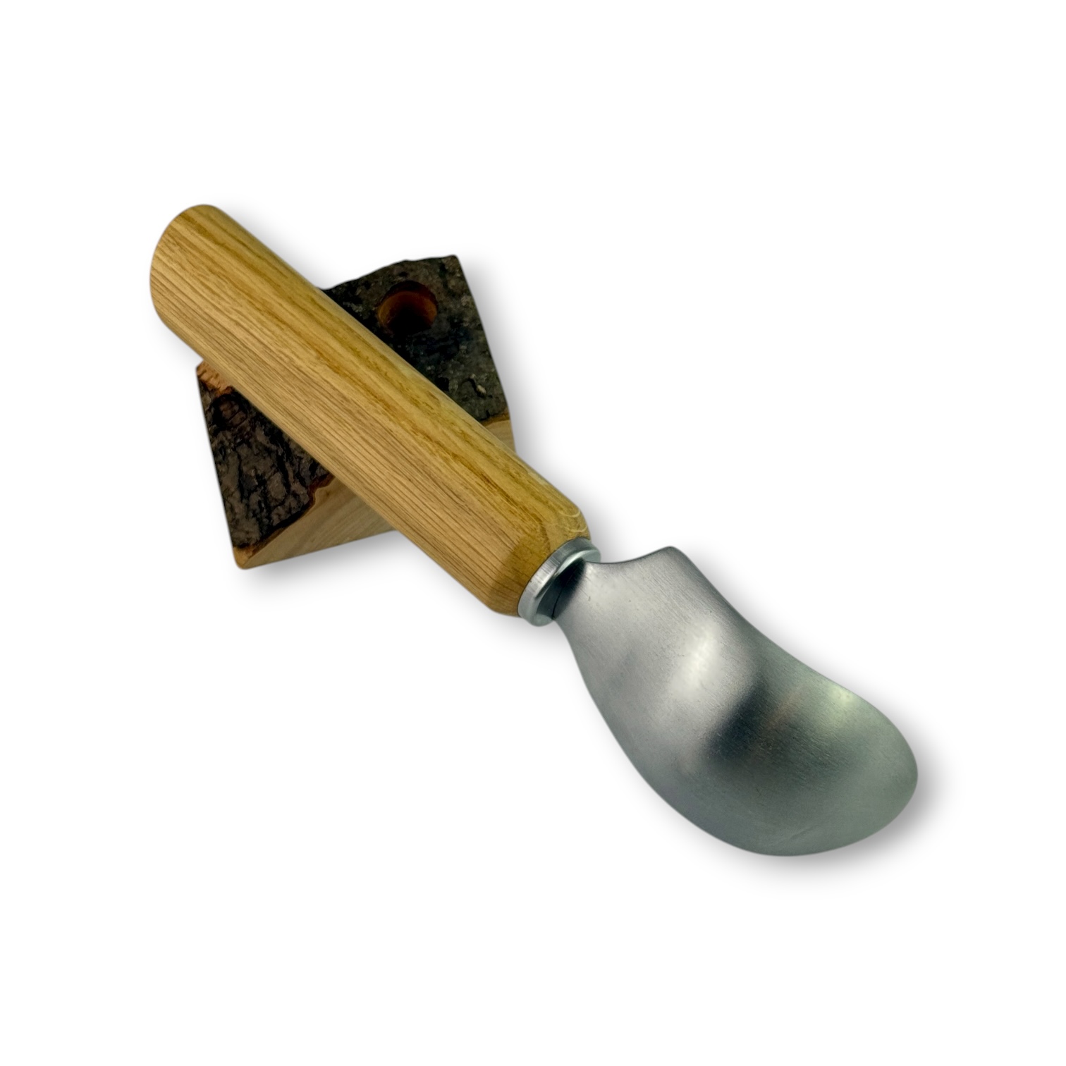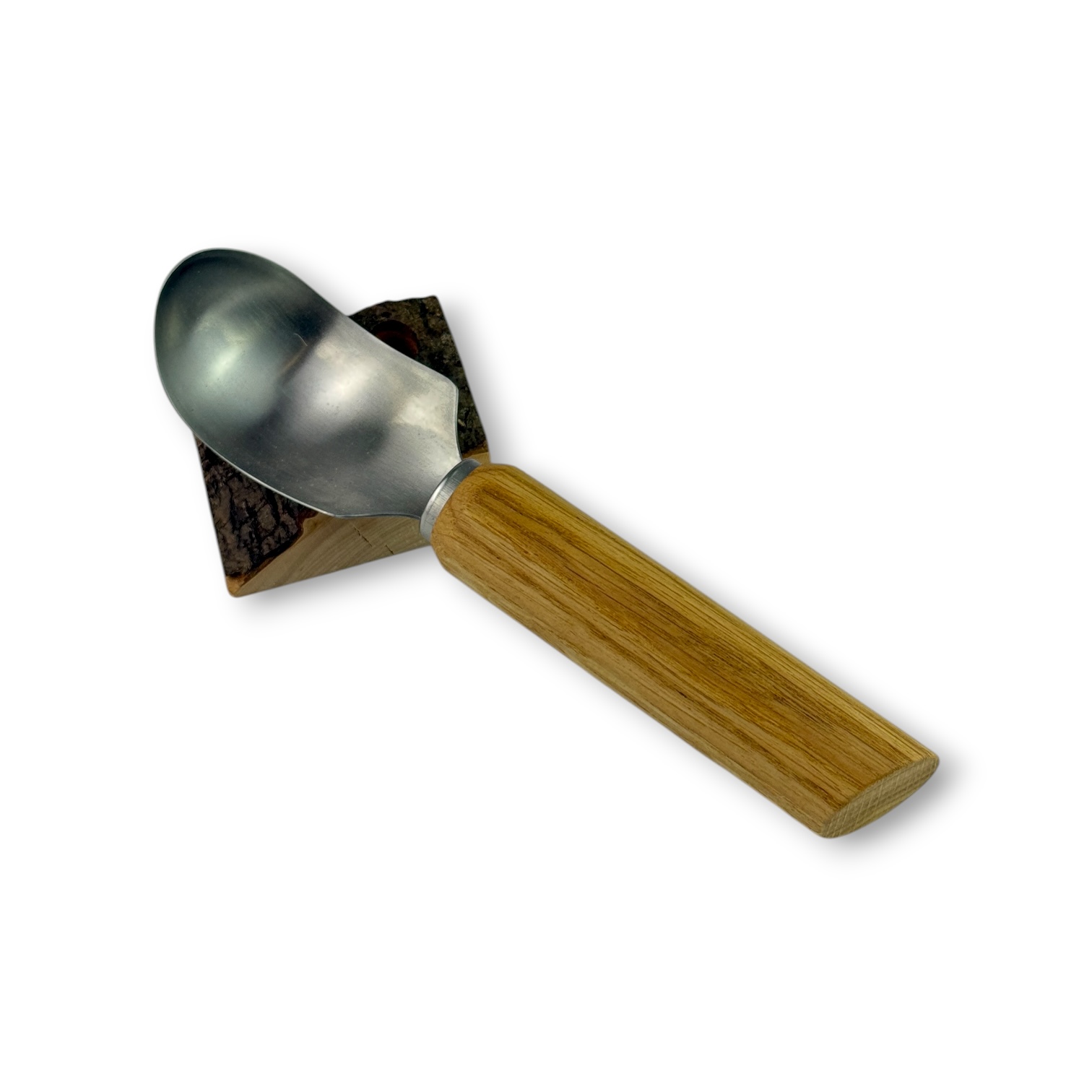 Der fein geschärfte Löffelkopf gleitet mühelos durch Melonen, Kürbis, Zucchini oder sogar Eis, während der von Hand gedrechselte Holzgriff angenehm in der Hand liegt und jedes Stück zum einzigartigen Unikat macht.