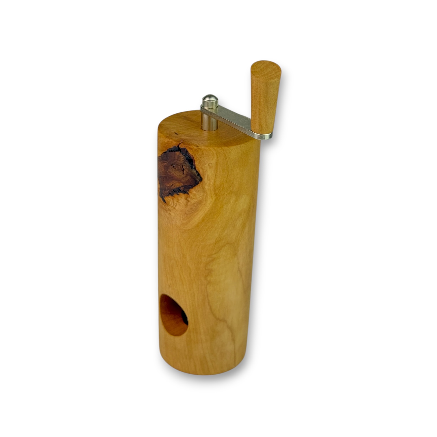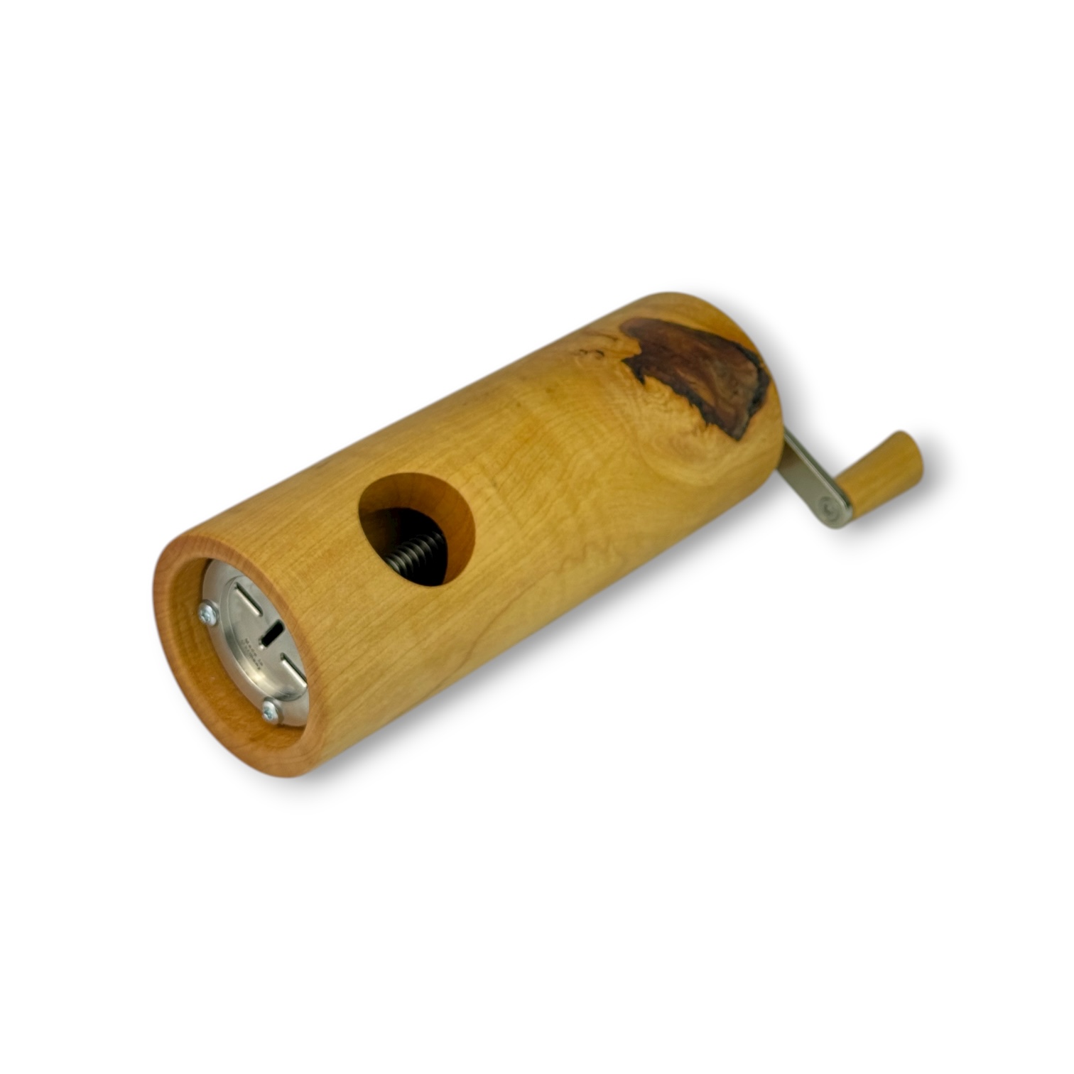 In meiner Werkstatt in Münchberg (Oberfranken) fertige ich jede Mühle individuell aus regionalen Hölzern, die ich sorgfältig auswähle und auf der Drechselbank in Form bringe. Jedes Stück Holz ist anders – mit seiner eigenen Maserung, Farbe und Geschichte – und macht jede Muskatmühle zu einem einzigartigen Unikat.