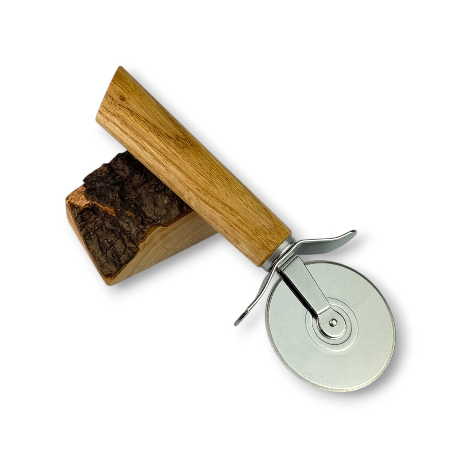 Das Eichenholz für diesen Pizzaschneider kommt aus Lanzendorf bei Himmelkron.