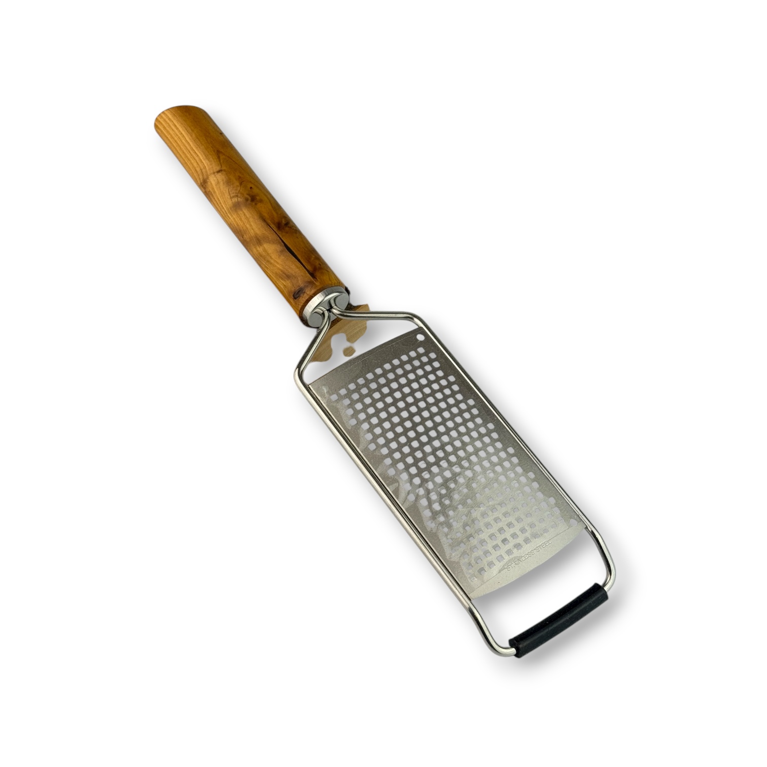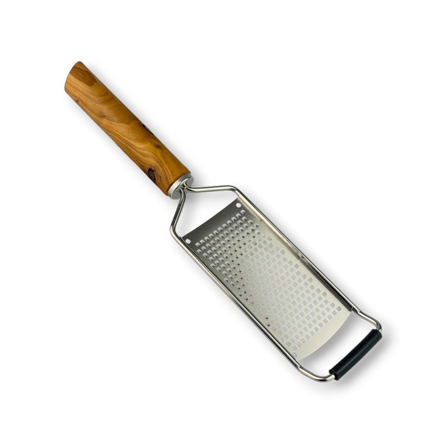 Die Käse- und Parmesanreibe mit edlem Holzgriff ist der perfekte Helfer für jeden Pastaliebhaber oder Käsejunkie. Das Holz ist mit natürlichen Ölen und Wachsen versiegelt und somit vollkommen lebensmittelecht. Die Reibe besteht aus hochwertigen Edelstahl aus Solingen. Auf der Reibe befindet sich noch eine Schutzfolie, deshalb kann es auf den Bildern etwas schimmern.